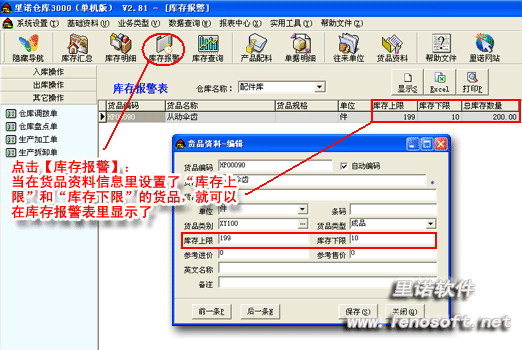 3.庫存報(bào)警功能: