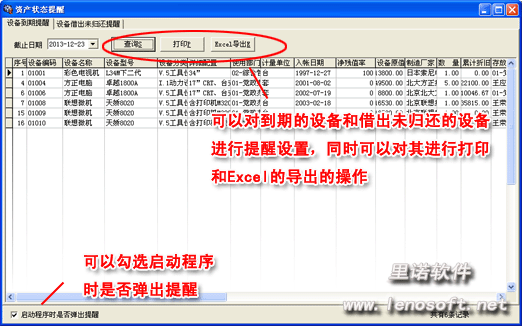 對借出資產(chǎn)/設(shè)備作出登記與保存記錄,并可方便地進行數(shù)據(jù)查詢、打印其報表、導出Excel文檔等。